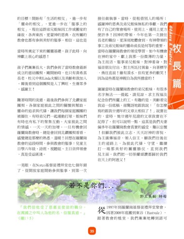 緣故,各奔東西,更蒙神的恩典,在所屬的 便許多!因神的帶領,今年也第一次接任