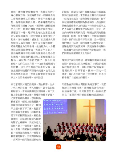 起來,沒有後遺症;感謝主!但沒過多久頭 治療。我們每次都有好的交通,並一同仰望