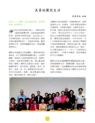分享神的話語,其中各有不同的看見;我們 時,團契也都為他禱告。今年2018年一月