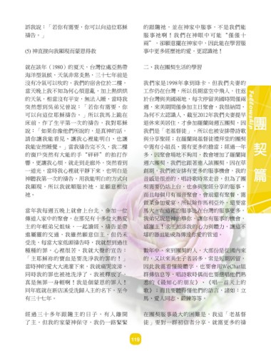 響,更讓我心煩,就走到走廊外,突然看到 週六團契,我們也跟著進入該團契,因在草