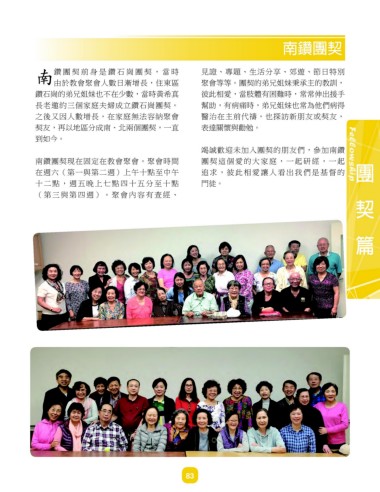 契友,再以地區分成南、北兩個團契,一直 表達關懷與勸勉。