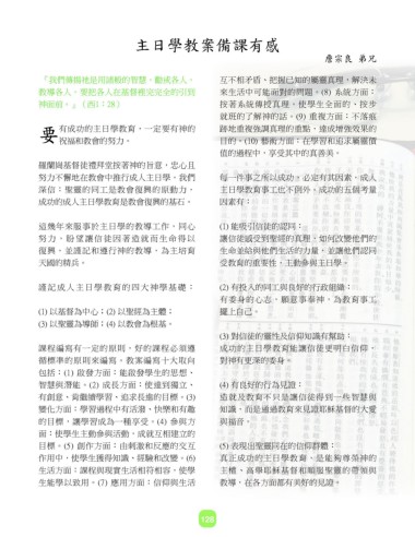 課程編寫有一定的原則,好的課程必須遵 成功的主日學教育能讓信徒更明白信仰,
