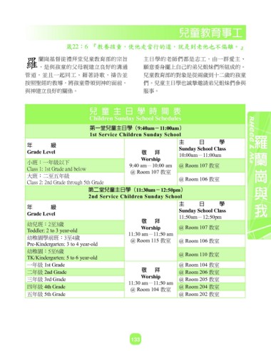 管道,並且一起同工。藉著詩歌,禱告並 兒童教育部的對象是從兩歲到十二歲的孩童