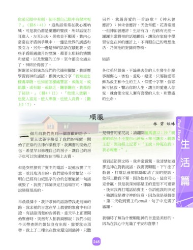 耳進入,左耳出去,果效並不顯著。我內心 謝謝主常將祂的話勉勵我,讓我在家庭中學