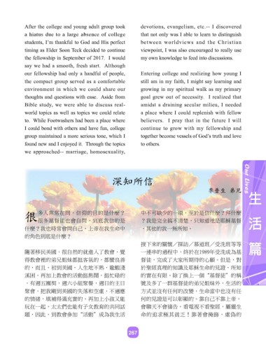 ,有週五團契,週六小組聚餐,週日的主日 號及多了一群基督徒的弟兄姐妹外,生活的